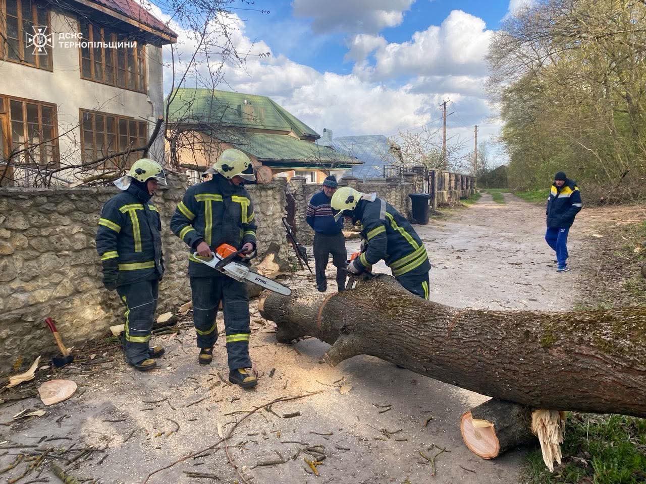 Протягом неділі, 26 квітня, підрозділи ДСНС Тернопільщини тричі залучалися до ліквідації наслідків негоди. Через потужні пориви вітру, що досягали штормових значень, на автошляхи області впали дерева, заблокувавши рух транспорту. Рятувальники оперативно реагували на виклики, розпилюючи стовбури та звільняючи проїжджі частини від гілля.
