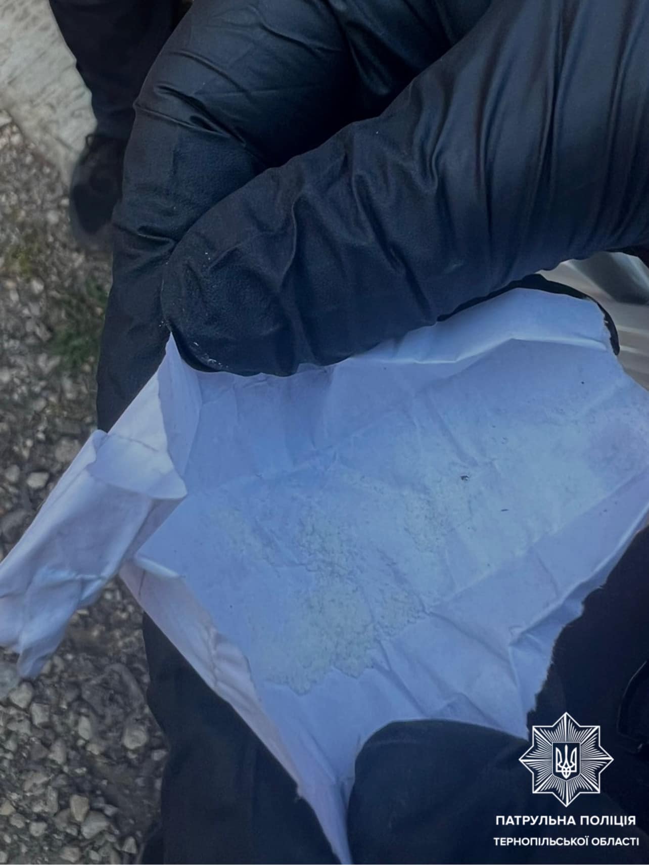 Нещодавно на вулиці Спортивній у Тернополі патрульні поліцейські помітили підозрілого чоловіка та вирішили його зупинити. Під час розмови 44-річний громадянин помітно нервував, тримав руки в кишенях і намагався уникнути спілкування. Згідно із законом, поліцейські провели поверхневу перевірку і виявили у нього паперовий згорток із порошкоподібною речовиною, яка, ймовірно, є наркотичною.