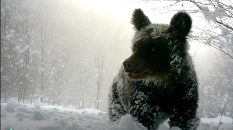 В Ужанському національному природному парку зафіксували нетипову для зимового періоду активність бурих ведмедів. Фотопастки, встановлені високо в горах, відзняли ведмедицю з малятами, які замість перебування у барлозі активно пересуваються засніженими лісовими масивами.